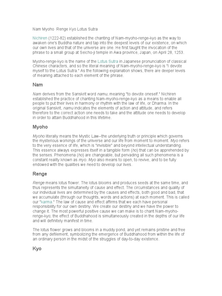 Buddhist Chant Nam Myoho Renge Kyo Meaning / See more ideas about buddhism, lotus sutra, buddhist practices.