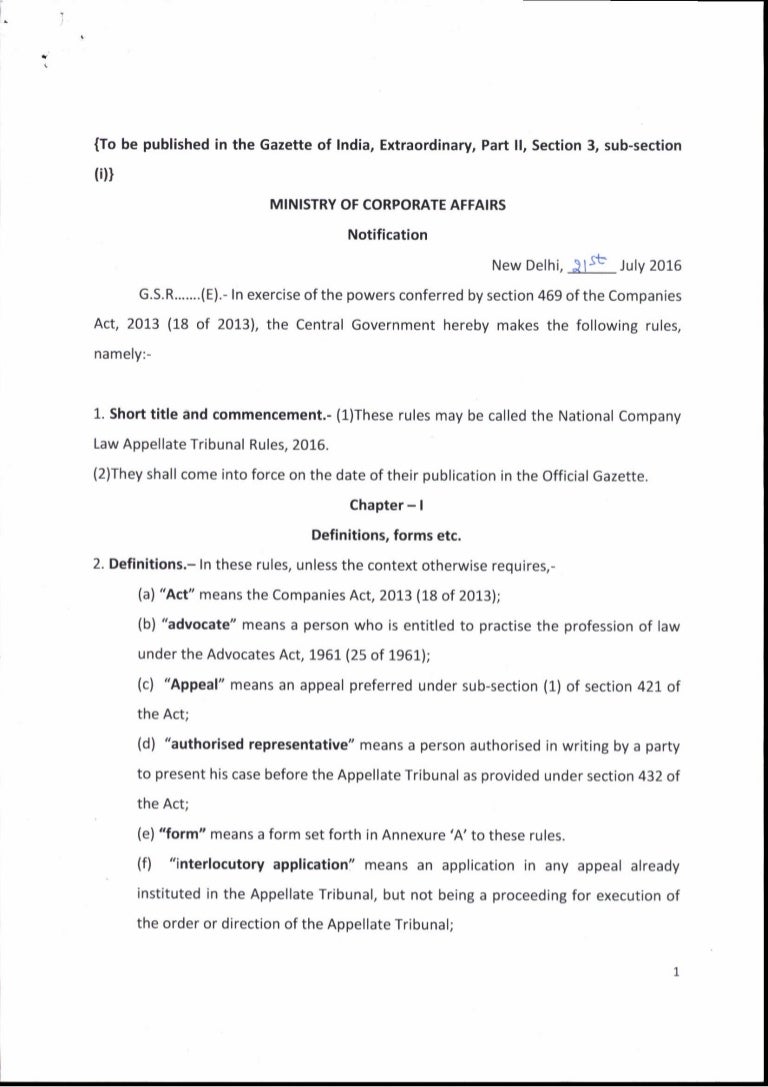 Company Law Tribunal Delhi / Filing of petition, appeals etc in national company law tribunal.