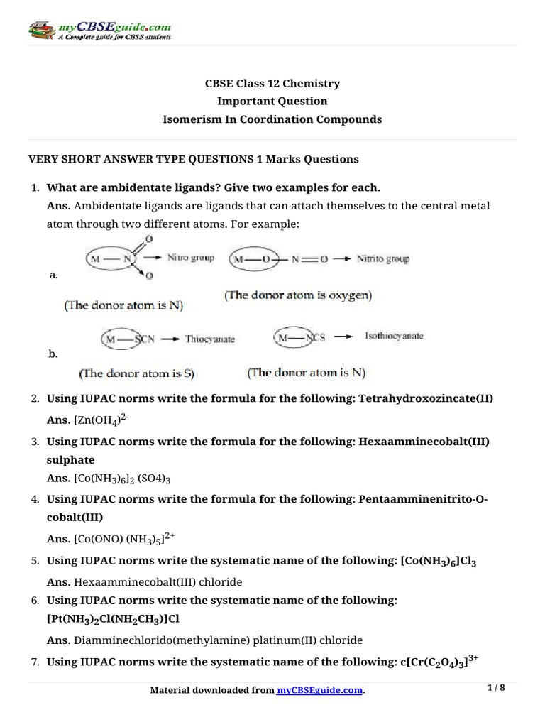 Coordination Compounds Class 12 Important Questions / It includes questions asked in previous year exams, questions provided by.