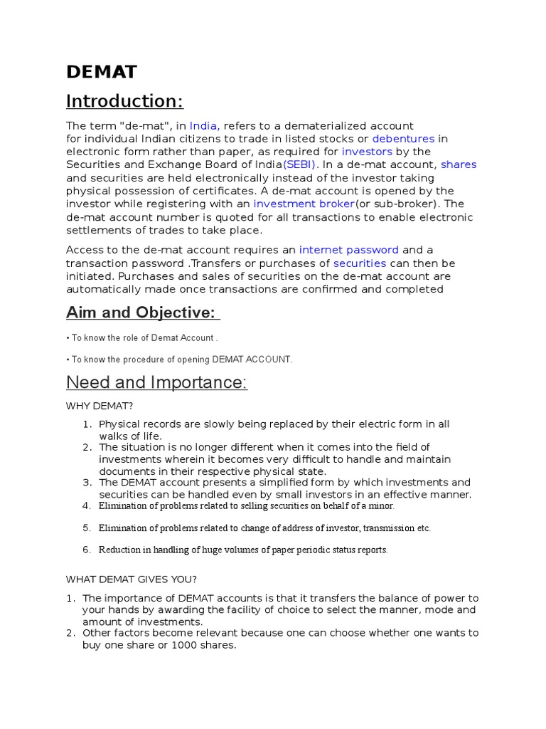 Demat Procedure / This article deals with all the basic procedures to open a demat account.