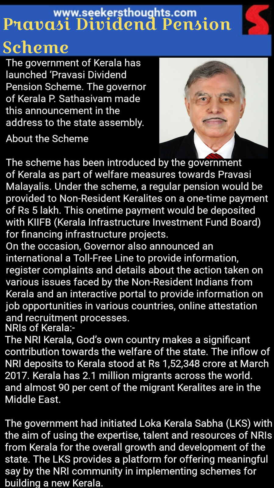 Pravasi Dividend Pension Scheme Seeker S Thoughts Sathasivam made this announcement in the address the nri kerala, god's own country makes a significant contribution towards the welfare of the state.