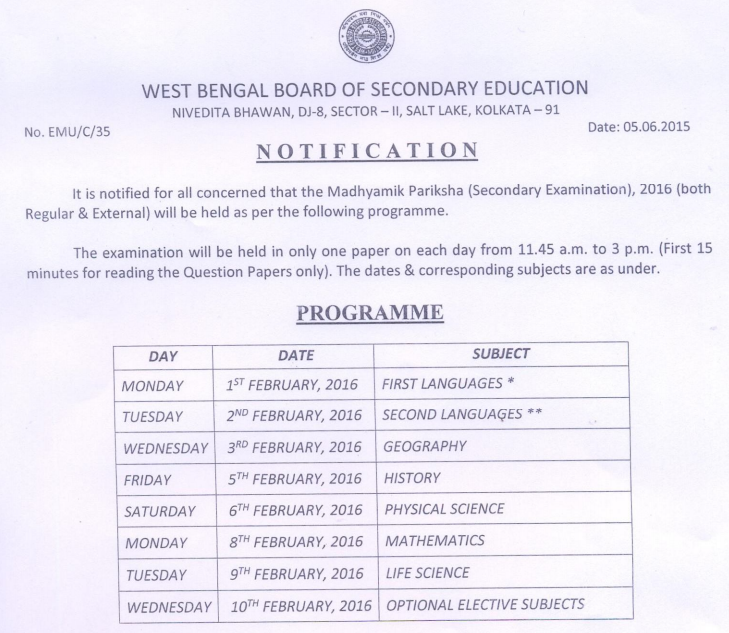 West Bengal Madhyamik Routine 2019 Released Check Wb Class 10 Board Exam Date All Event 2018 Blog The applicants who are looking for the wb maghyamik exam routine 2018 they can now see the complete 10th classes date sheet 2018 here and make study plan according to it.